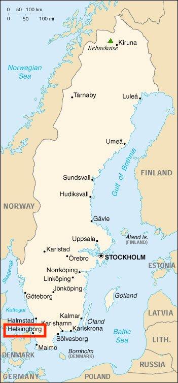 Helsingborg, anciennement Hälsingborg, ville et port maritime, Skåne län (comté), sud de la Suède. Située dans la partie la plus étroite de l'Öresund, en face de la ville danoise d'Helsingør (Elsinore), Helsingborg est l'endroit le plus pratique pour le trafic automobile en provenance et à destination du continent européen. En raison de sa situation, Helsingborg est connue comme "la perle du détroit" Helsingborg est un centre de navigation de premier plan et une ville manufacturière importante. La construction navale est également importante. Il existe un service de ferry pour Helsingør, et des chemins de fer relient Stockholm, Göteborg et Malmö. Population (2005 est.) mun., 122,062 comme indiqué sur la carte Helsingborg Suède.